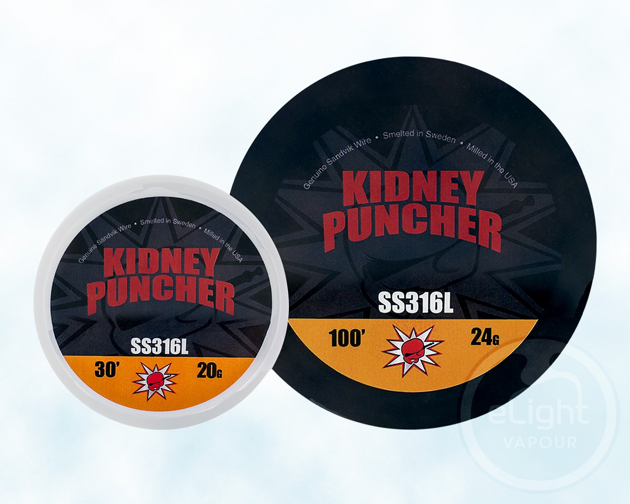 Kidney Puncher brand Stainless Steel 316L wire, from 20 awg to 40 awg, in 30 foot to 500 foot spools. Kidney Puncher SS316L has been created to have the same KPSI as Kanthal A1 - no more springy stainless!